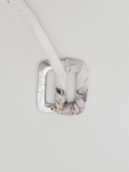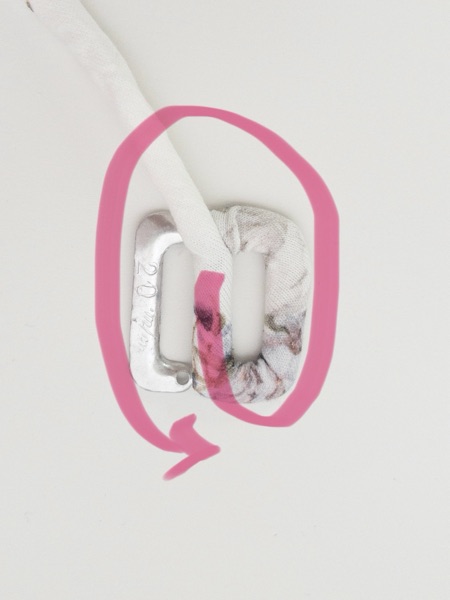 バックルは「包みバックル作りに挑戦」の作り方とは違い、筒状の生地を通していく方法で作りました。