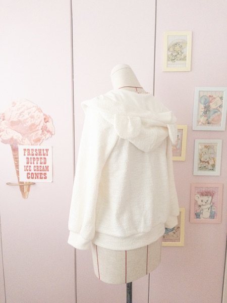 娘がこのごろ白やアイボリーの服が好きになり、ねこの隠れ家で以前購入したツイードニットをとても気に入っていたので、この生地でくまみみブルゾンを作りました。普段縫わない形なので組み立てがとっても楽しかった☺️