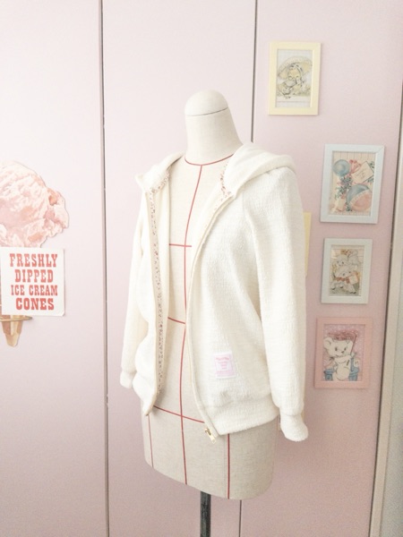 フード裏は薄手のポンチニット。そうだ、作って日が経つとすぐ書くの忘れちゃうんだけれど袖口と裾は共布です。色が似たリブを持っていなかったことも理由の一つなんですが、ツイードニットの持つ雰囲気を壊したくなかったのでこの選択に。