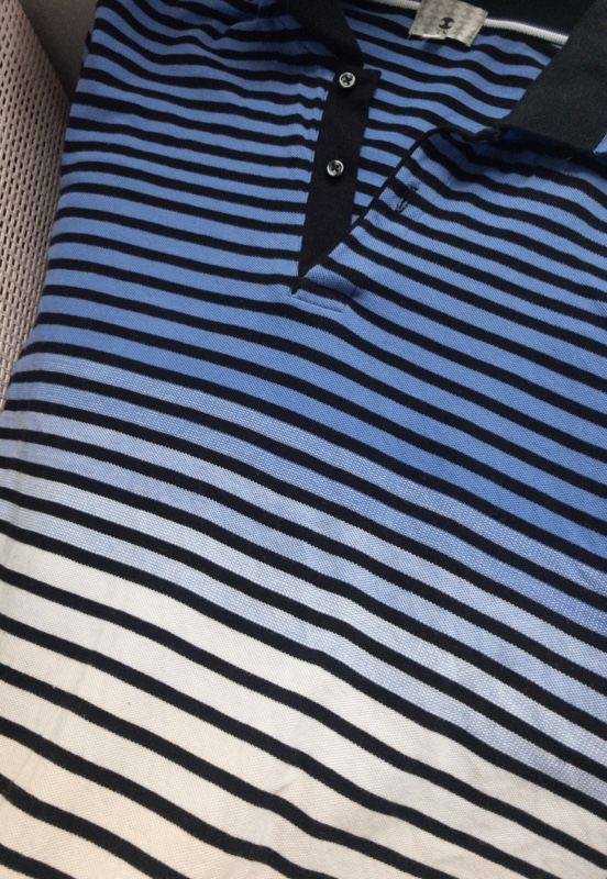 レオパードのバッグの内布に使う接着芯が届く間、夫が着ないポロシャツにハサミを入れました。