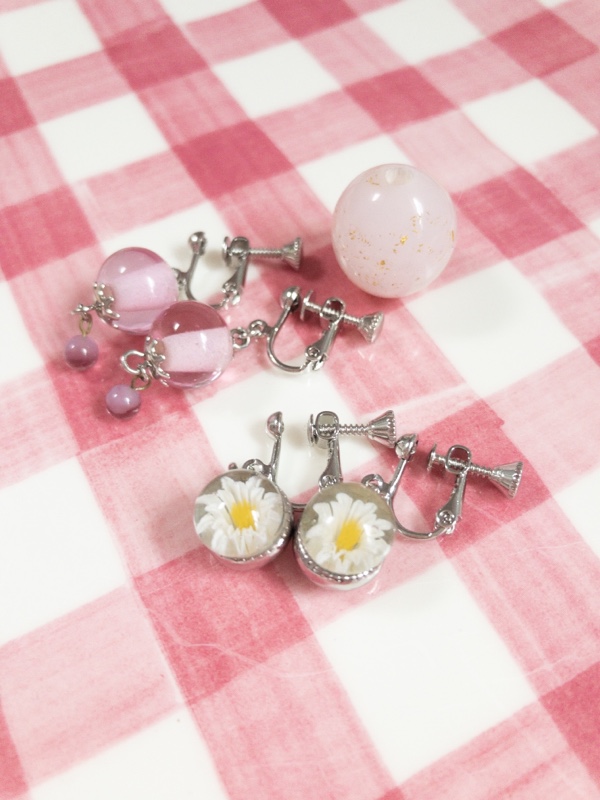 マーガレットが入ったようなイヤリングもひとつひとつ手作りだそうで、じっくり選んで決めました。