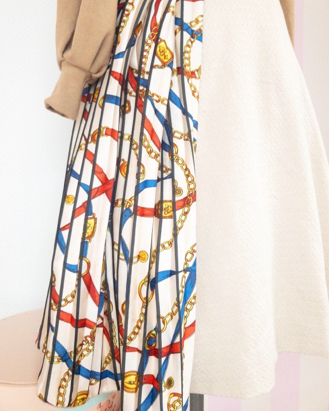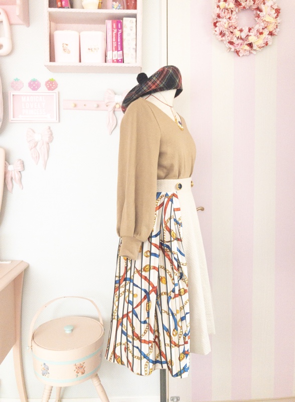全体的に秋っぽくってしかもプリーツとニットの合わせが少しスクールテイストで