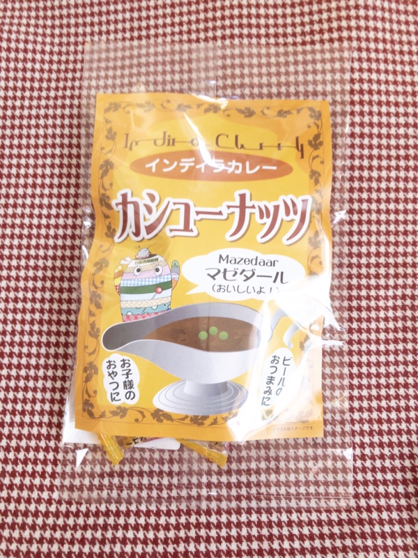 カレー味のカシューナッツ。ええ普通のがいい…と思いひとつ食べたところ