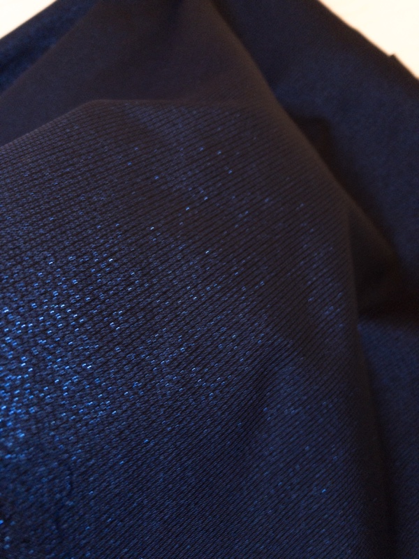 日暮里でドレスの生地を購入しました。青に近い色でキラキラしています。