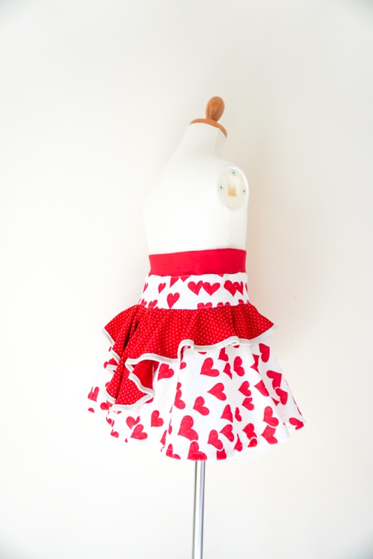 後ろは赤いピンドットの天竺ニットでヒラッヒラ。