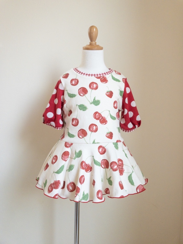 ●完成●いちごとさくらんぼのペプラムワンピース 100cm Posted on 2019年3月10日2019年3月10日 by Shiori いちごとさくらんぼのペプラムワンピース、完成しました。 minne で販売中です。いちご狩りにもどうぞ🍓🍒 袖はタックをたたみ、袖口に向かってぷっくりしたシルエットになるようにしました。袖口がきつくないので、中に長袖のTシャツを合わせることもできます。 裾は赤い糸で巻きロックで仕上げました。 赤色大好きなので縫っていて楽しかった🍒☺️生地もふわふわして柔らかくて気持ちいいの☺️生地はリブ以外スムースを使いました🍓 にほんブログ村