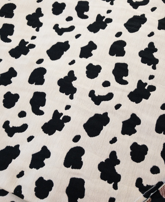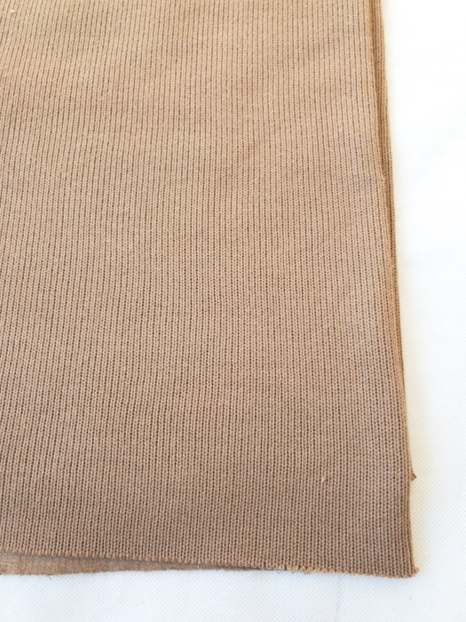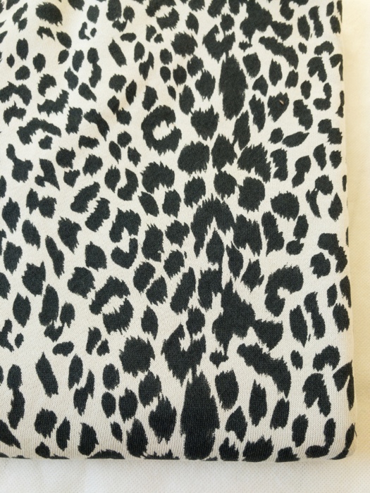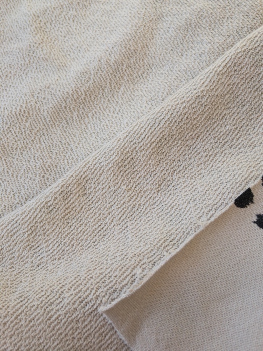 少し赤みも入ったベージュにレオパードの入った裏毛ニット。表面はさらっとしていて、厚みがあり、しっかりしている。