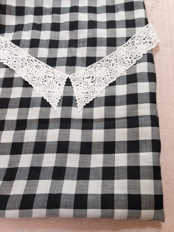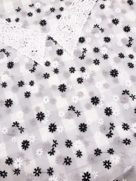 コットンブロックチェックステッチ グレーに刺繍の生地がぴったりだった♡