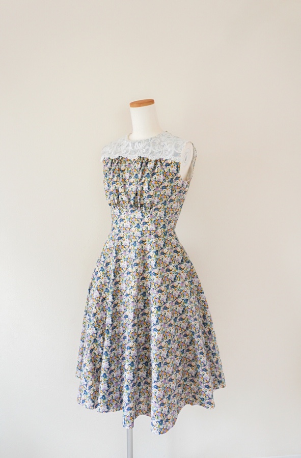 リビーのワンピースの裏地がついて、残りの作業は袖付けと裾の処理のみになりました。