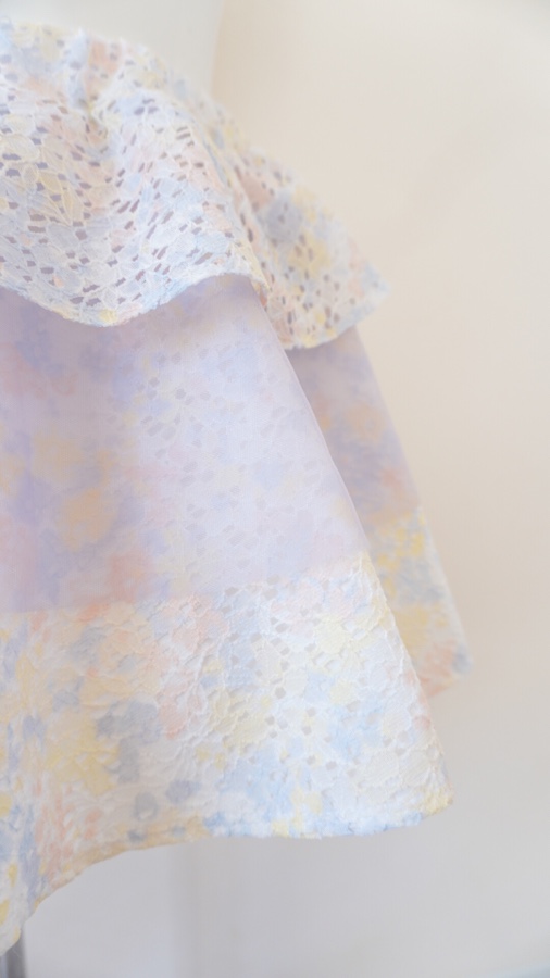 しわになりにくいポリエステルのレース生地は日暮里で購入したものです。