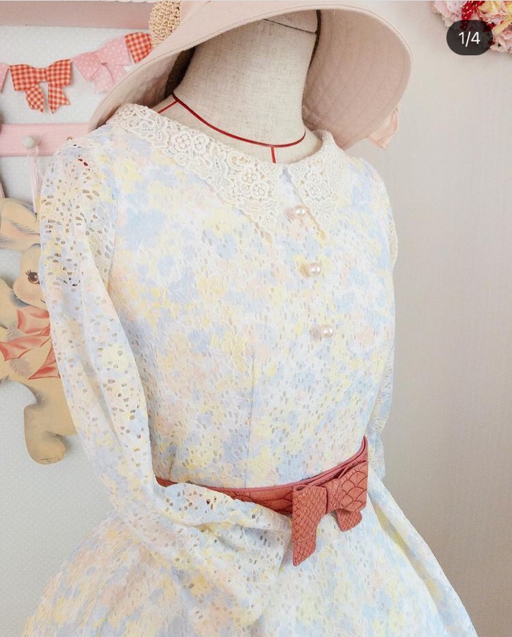 このスカート、もとはこの甘々なワンピースでした。全然着てない💦