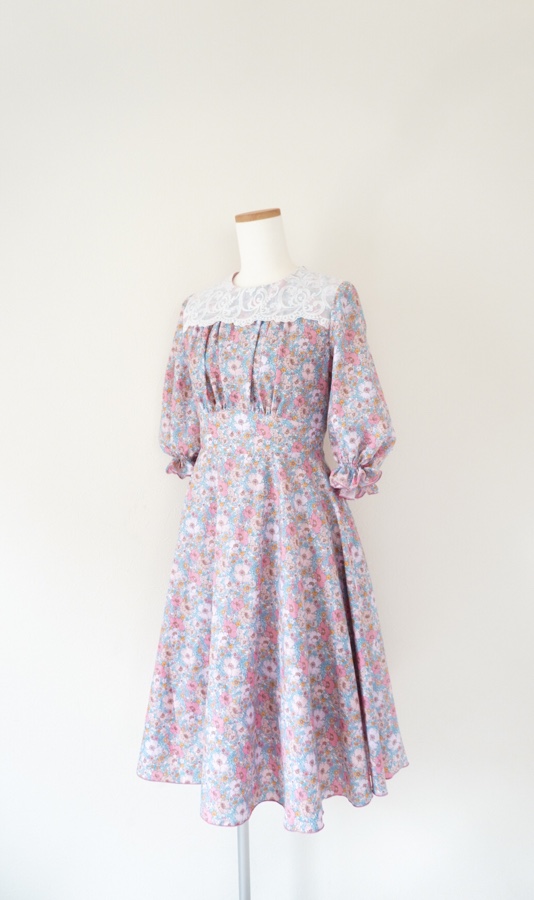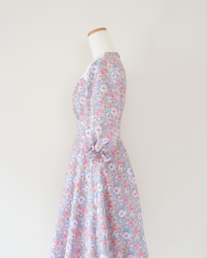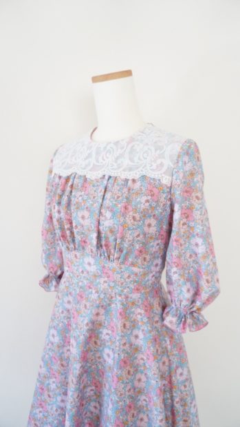 生地はリバティプリントのメドゥソングを使用しました。白地が好きで、作る服が似たり寄ったりになりがちなので、地の色がついたものを探すようになりました。