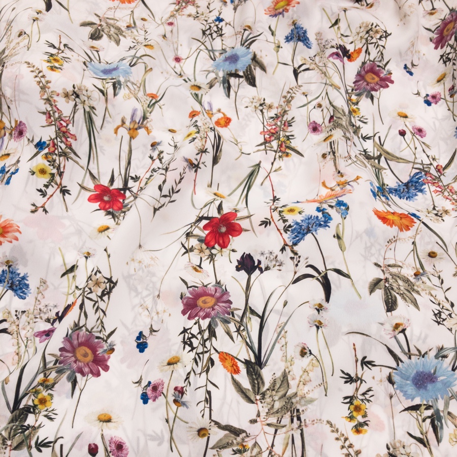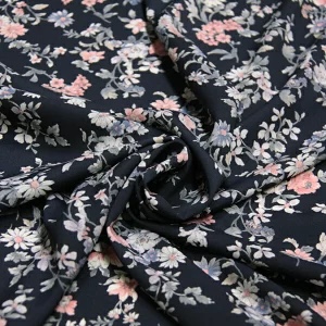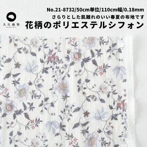 日本製 ポリエステル アンティークデシン エレガント点描風フラワープリント ダークネイビー地 L[オーダーカット生地 10cm単位] 【RCP】