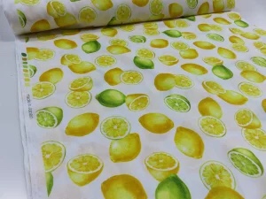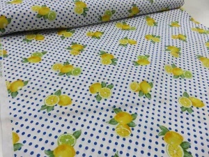 ドット&レモン オフ×ブルー シーチング 【メール便3m可】