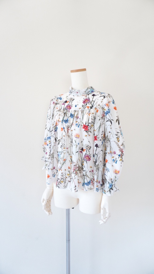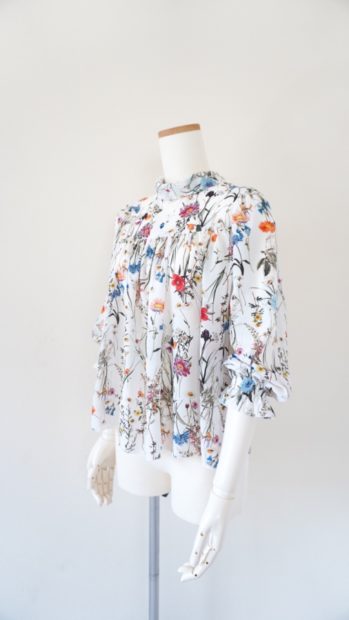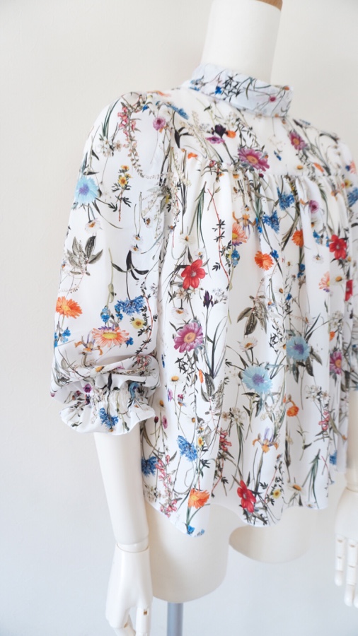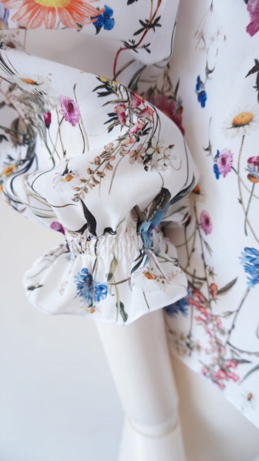 花柄のポリエステルブラウスはファスナーつけを残すのみとなりました。
