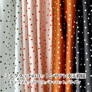 ◇◆予約販売◆◇【10cm単位】シルクタッチ コットンサテン 水玉模様 キャラメル/ノアール/キャロット/ライム [M便 1/20]生地 布 moipon コラボ