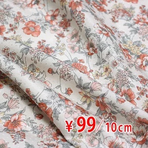 日本製 ポリエステル グログランシャンタン ラフドットジャガード レトロフラワープリント 白&朱色 C[オーダーカット生地 10cm単位] 【RCP】