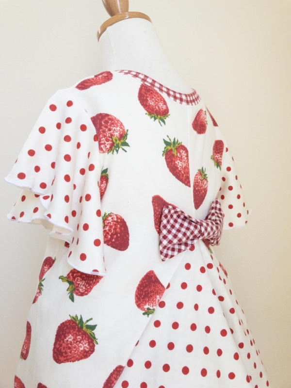 2段になったフレアの下段はチェックの生地。リボンも同じ生地を使っています。