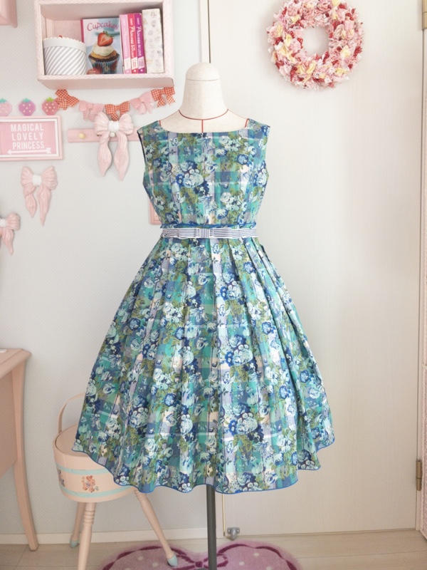 マドラスチェックのマジカルブーケのワンピースが完成しました。