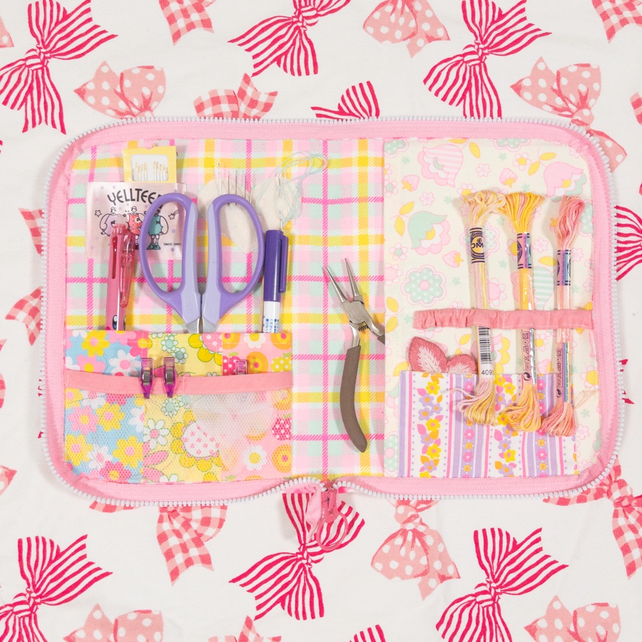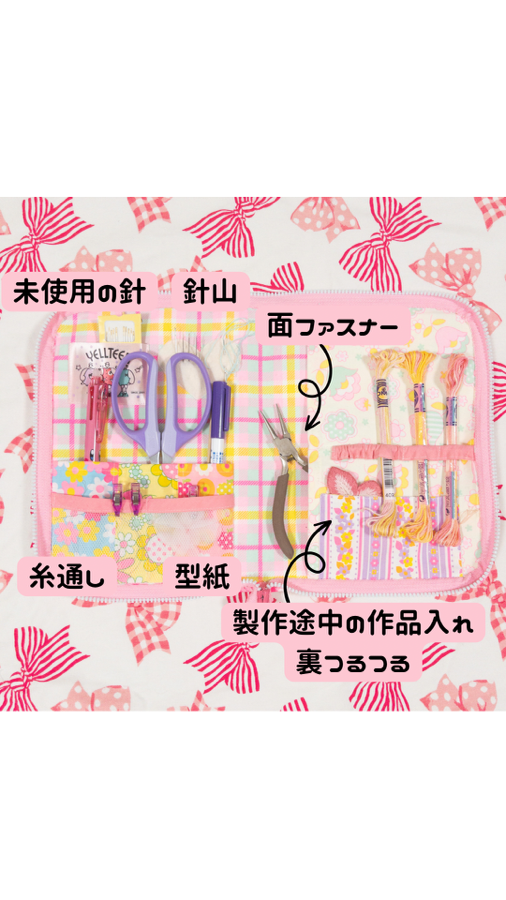 刺繍用のケースは材料が今朝届いたのでファスナーを手でつけるところまで進みました。