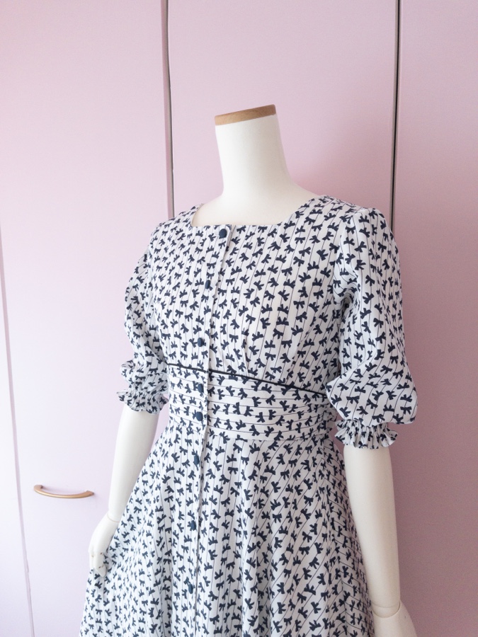 リボン柄のワンピースができました。