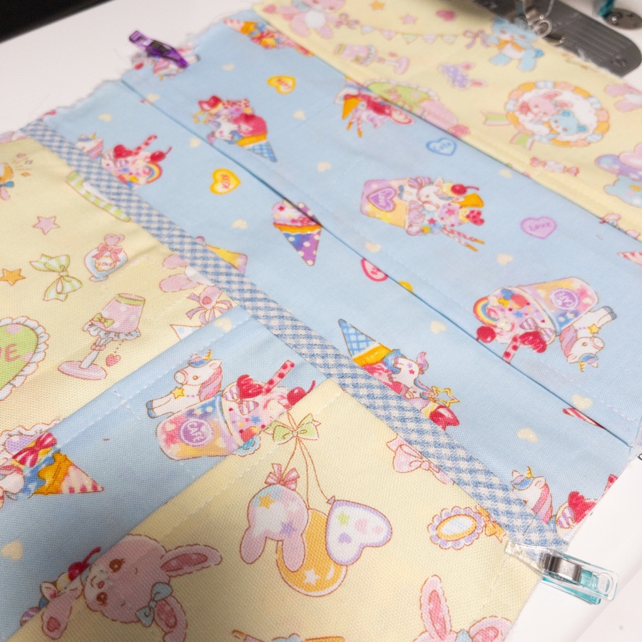 娘のマルチケースは日曜日にファスナーをつける手前まで進みました。娘のあれやこれやの希望を詰め込んでいるので裁断や縫い方にとても脳を使った。