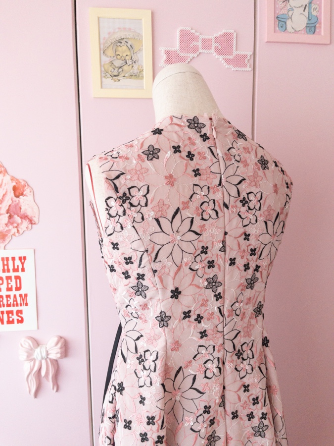 前の刺繍生地は透けなかったけれど、今回はよーーく透ける。裾は透けを活かしたいなと作っています。