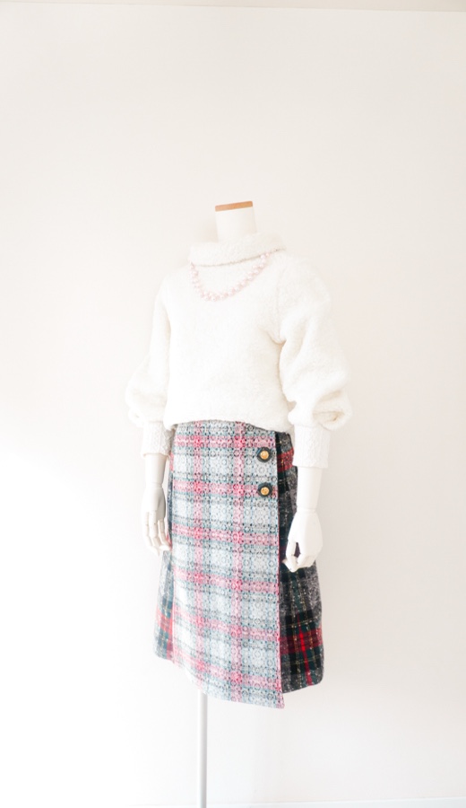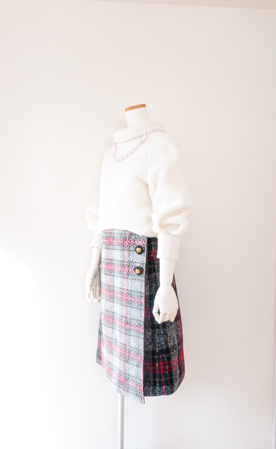 今日はセルフォードの半袖ニットに、クルールのパターンで作ったラップ台形スカートを合わせました。