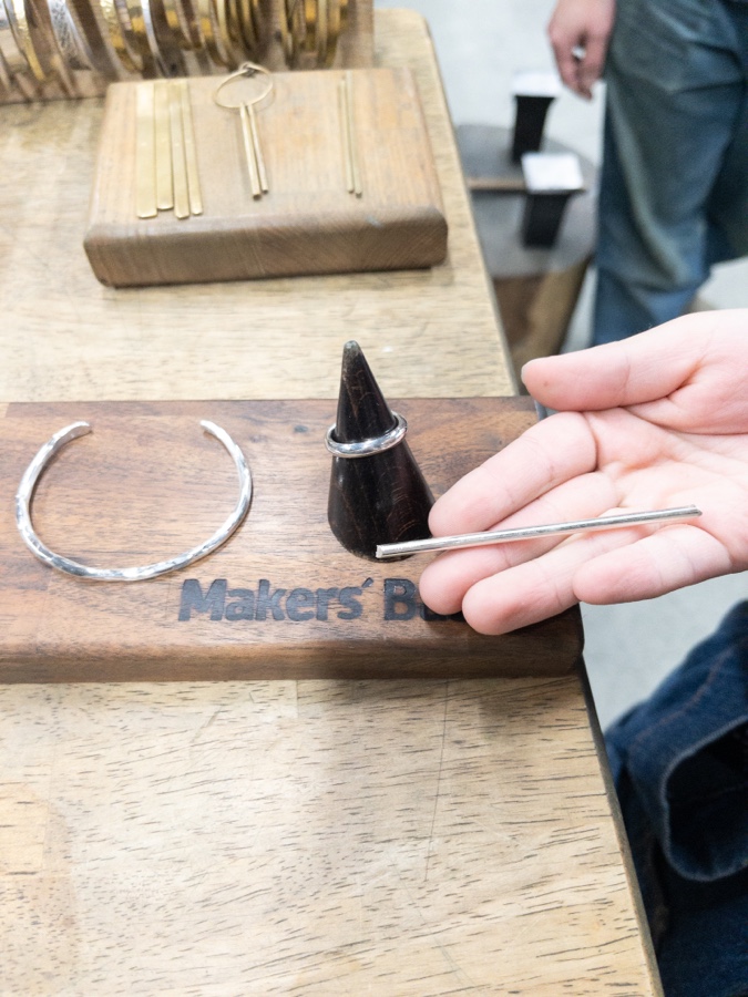 私はバングル大好きなので、今回ちょっと太い丸棒(3mmだったかな?)を選んでバングル作った☺️バングル以外だと、リング、イヤーカフ、チョーカーが選べます。