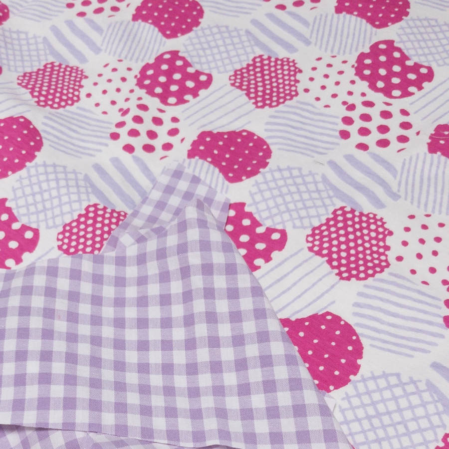 チェックはペールラベンダー色。マルイシの綿ポリは色数が多いね👀
