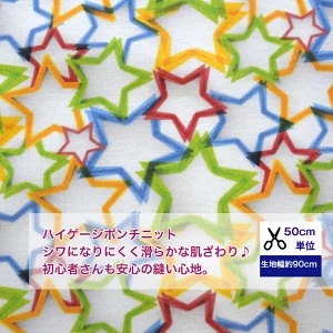 ニット【50cm単位】なめらかで型崩れしにくい♪初心者さんでも安心ニット♪「カラフル☆スター」 ハイゲージポンチ 綿 布 ニット 服/ 手作り デジタルプリント 星 ワンコ服 犬服