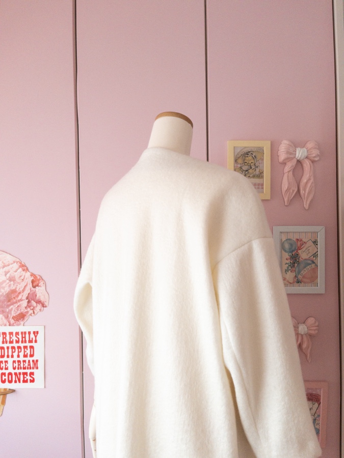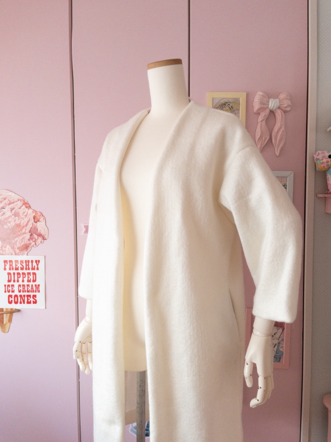 ニードルシャギーニードルを使ったカーディガンのようなコートが仕上がりました。