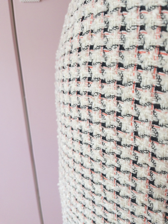 持っている甘めのツイードはこの形にして甘さを加減すると普段使いしやすくていいのかもな。