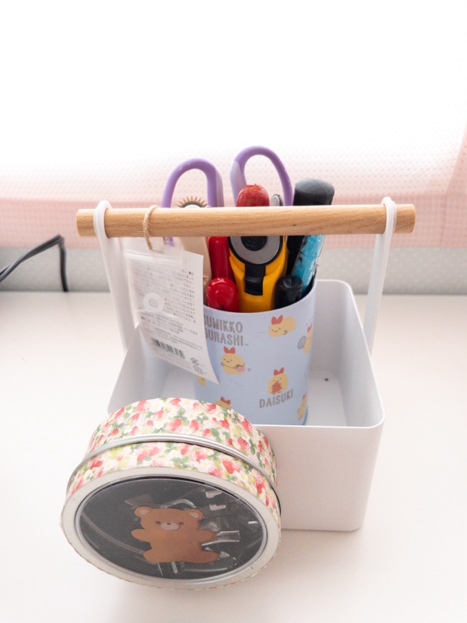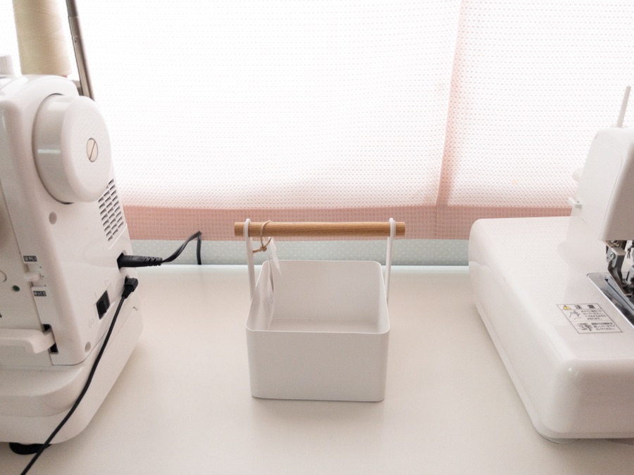 あと、縫ってる時に座ったままサクッと道具を出し入れするにはボックスの向きを変えても持ち手が煩わしく感じました。