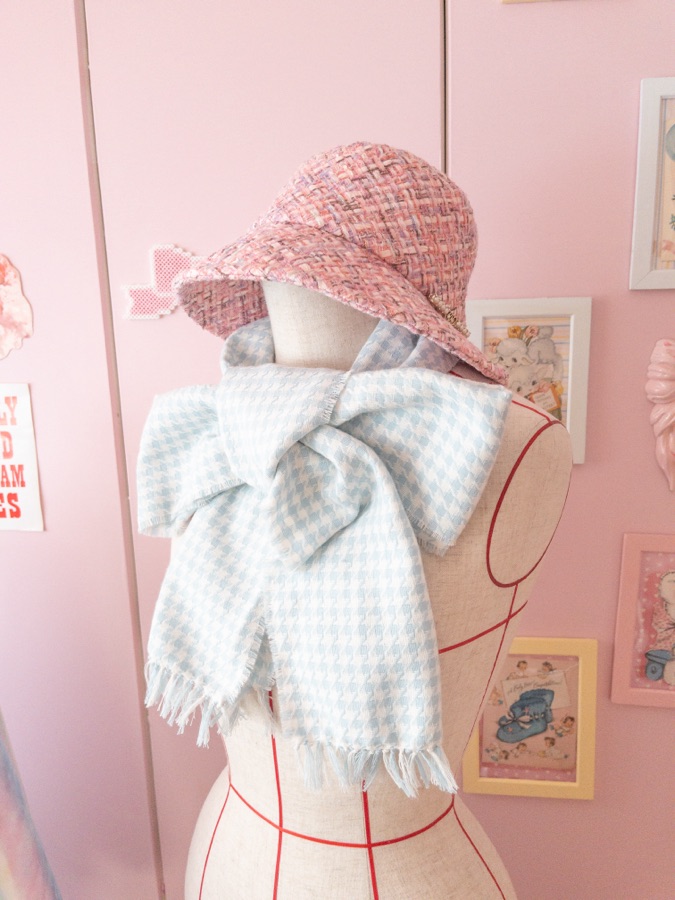 ウールでほわっほわに柔らかい千鳥格子柄の生地で、長い間とっておいたものをただの長方形ではありますが、やっと形にすることができました。