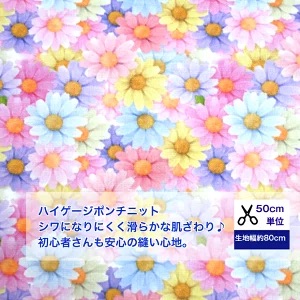 ニット【50cm単位】なめらかで型崩れしにくい♪初心者さんでも安心ニット♪「パステルカラーのsweet flower」 ハイゲージポンチ 綿 布 ニット 服/ 手作り デジタルプリント 花柄 パステル