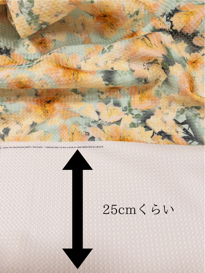 この生地、プリントのない白い部分が25cmくらいあるんだ〜