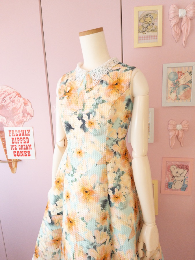 やっとジャカードのワンピースの写真を撮ることができました。