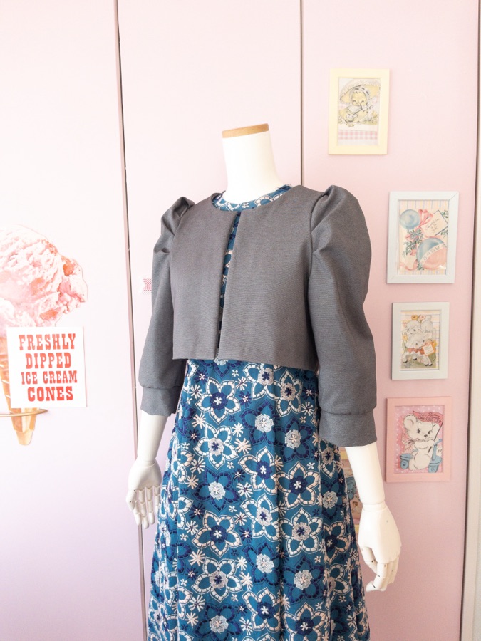 ハイウエストのワンピースだとこのカーディガンがしっくりくる。仕上げにぐるっとまつり縫いを考えるとだるくなるんだけど、それでもこのカーディガンがあると助かる。