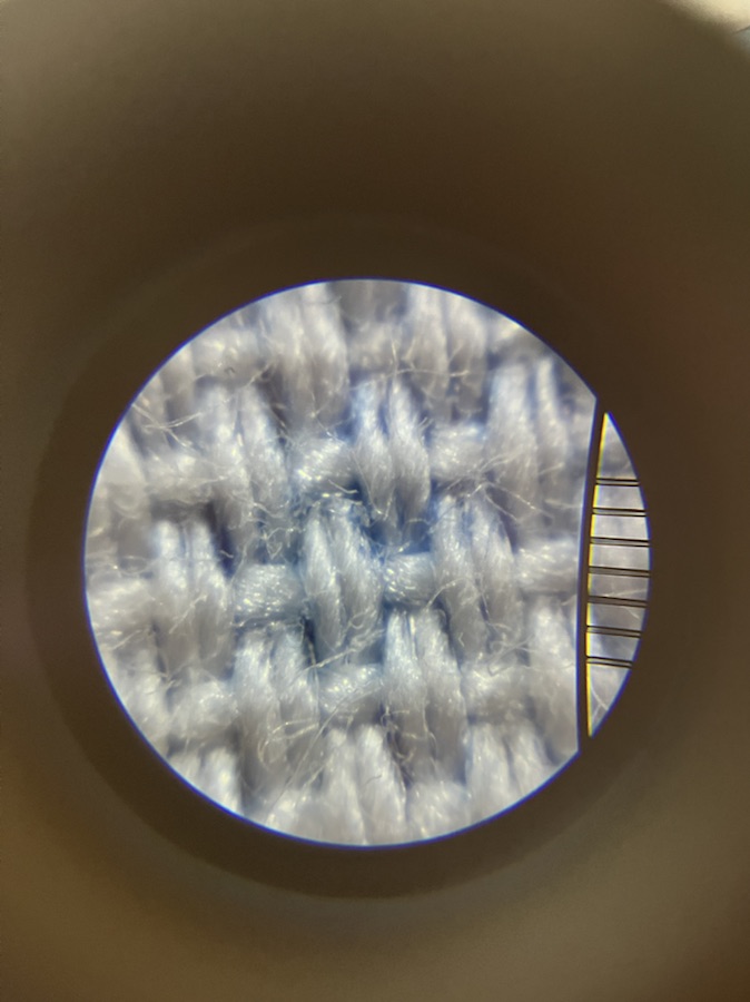 息子が自由研究で作っていたシャツが完成し、レポートを書くにあたって顕微鏡(チャレンジの付録)で生地を見てみました。