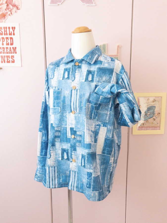テーマを変えてシャツが作りたいと言う息子が選んだのは、普段私がよく気に作っている反抗期手前の君に着せたい服 (レディブティックシリーズno.8061) のオックスフォードシャツの長袖のほうだったかな、前立てがないやつ。