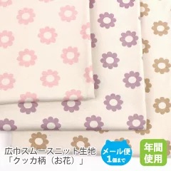 広巾スムースニット生地155cm巾/「クッカ柄(お花)」【花 フラワー 女の子綿 布コットン日本製国産 女の子 ハンドメイド 商用利用可 オリジナル商品 ジャージ ピンク ベージュ ラベンダー】