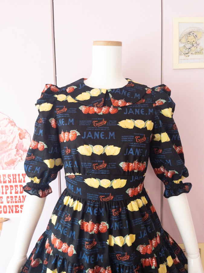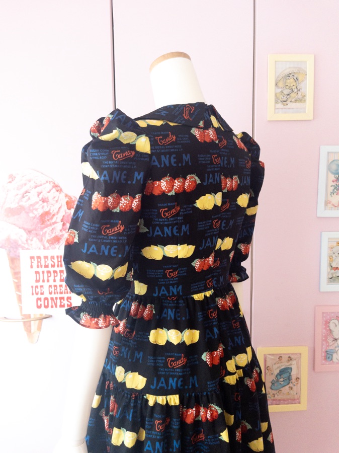 ポップなプリントの生地でワンピースを作りました。
