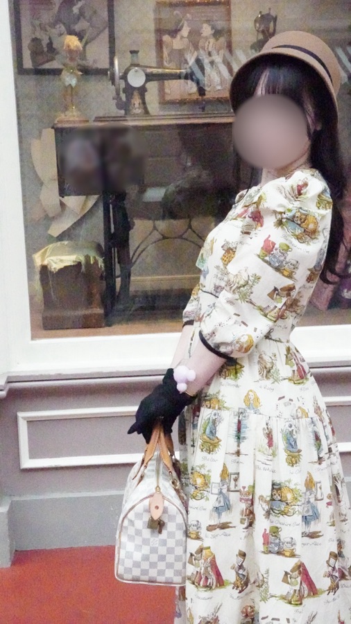 アリス柄のコットン生地を使い、パターンは鈴木圭の考えるドレスアップドレスをアレンジしています。