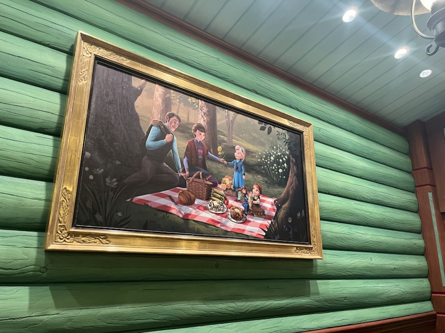 中は玉座もあったり、アナとエルサの幼少期の頃の絵が飾られていたりと言われてみれば城なんだろうけれどかなりカジュアルな雰囲気で、一瞬城であることを忘れる。