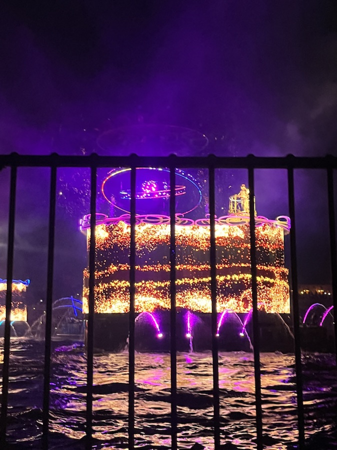 レインコートを着て夜のショーを観ました。子どもたちが小さいうちは(親の)体力的にもこの時間までは居られなくて、初めてじっくり鑑賞しました。