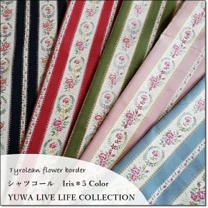 YUWA*有輪*綿シャツコール生地*Irisチロリアン風ボーダー小花プリントコーデュロイ *5色(706155)