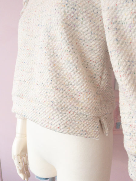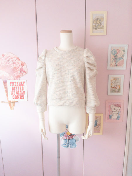 着心地は楽で、肩がぽこっとして可愛いトップスになりました。この生地の持つ柔らかい雰囲気も形と合ってたかも🥰