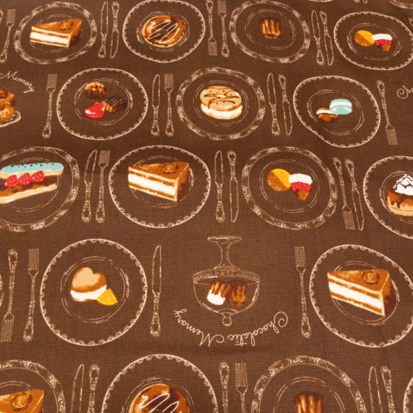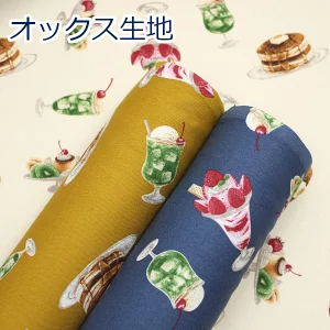 またスイーツ柄のオックス生地。これは娘が自分で縫うエプロン用で、上下があるようでない、でいいのかよく見てない🤔