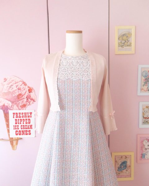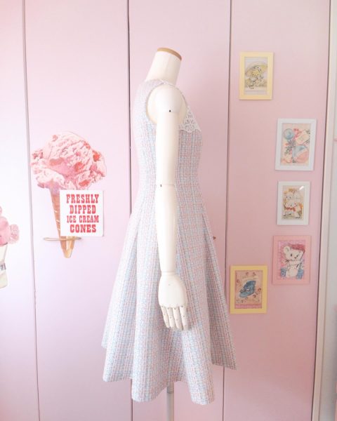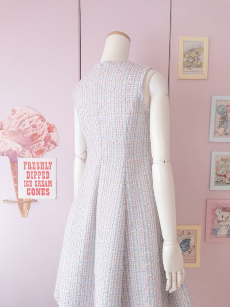 柔らかいパステルカラーのツイードワンピースが完成しました。